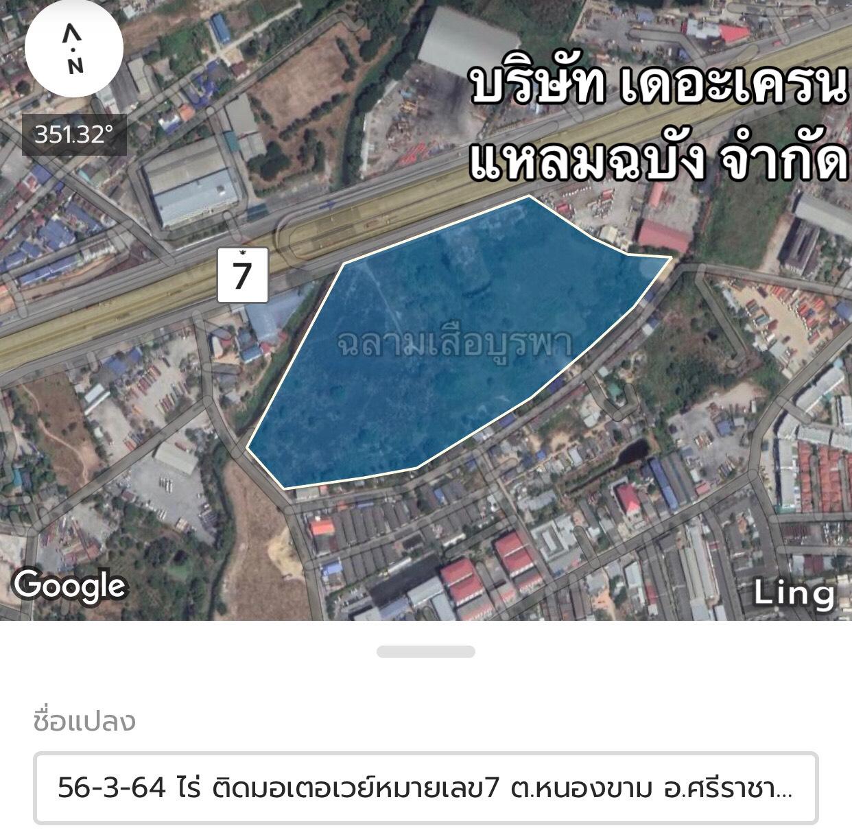 ขายที่ดิน 56-3-64 ไร่ ต.หนองขาม อ.ศรีราชา จ.ชลบุรี ติดถนนมอเตอเวยร์สาย7