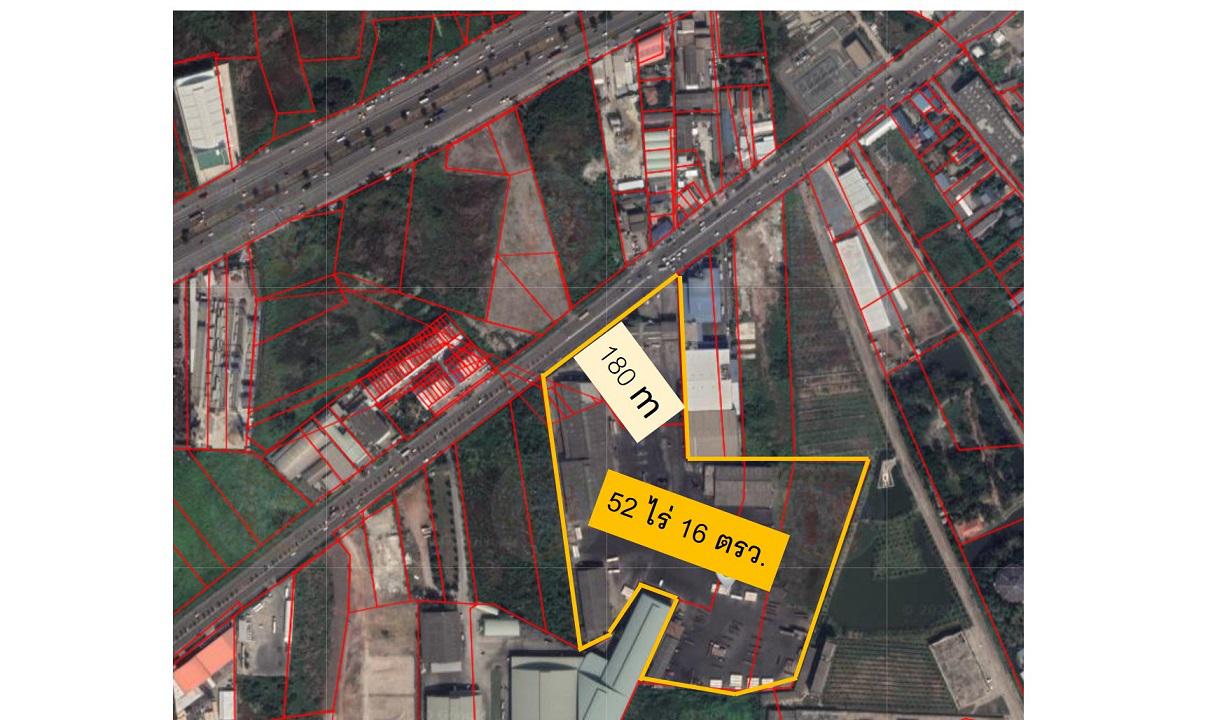 ขายที่ดิน ติดถนนเอกชัย ใกล้ถนนพระราม 2 สมุทรสาคร ที่ดินโฉนด เนื้อที่รวม 52 ไร่ 16 ตารางวา