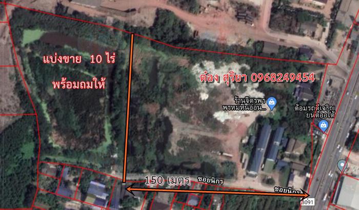 ที่ดินทั้งหมด 30 กว่าไร่ เจ้าของแบ่งขาย 10 ไร่ ที่ดินอยู่ด้านหน้า โรงงานสุรา กระทิงแดง กม.12