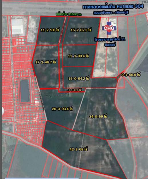 SS168 ขายที่ดิน 176-1-86 ไร่ ติดถนน 304  ข้าง รพ.จุฬารัตน์ 11 อินเตอร์ ปราจีนบุรี ที่ดินทำเลดี ราคาถูก