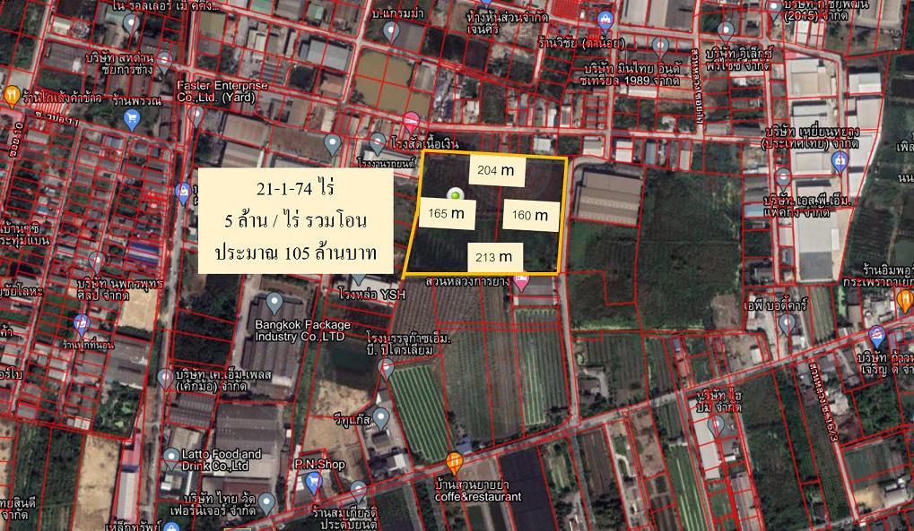 ขายที่ดินเปล่า 21-1-74 ไร่ ติดถนนซอยสวนหลวง หน้ากว้างติดถนน 160 เมตร ผังเมืองสีม่วง 100%