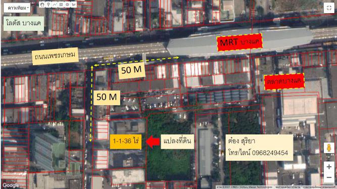 A164 ขายที่ดินผังสีแดง 1-2-39 ไร่ ใกล้รถไฟฟ้า 100M ติดถนนบางแค ใกล้เพชรเกษม กรุงเทพ ราคาถูก