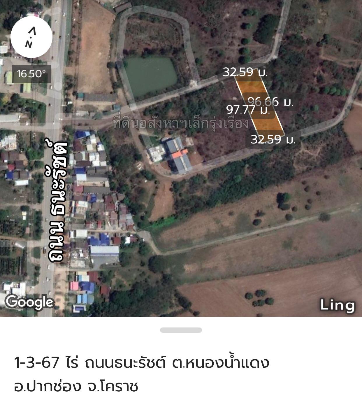 ขายที่ดิน 1-3-67 ไร่ ตั้งอยู่ ในโครงการจัดสรรไทรทอง ต.หนองน้ำแดง อ.ปากช่อง จ.โคราช ติดถนนภายในโครงการทั้ง 2 ด้านๆหน้าและด้านหลัง อยู่ในทำเลย่านที่มีความเจริญสูง
