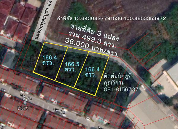 ขายที่ดินเปล่าสี่เหลี่ยมผืนผ้า 3 แปลง รวม 499.3 ตรว. อยู่ซอยพุทธบูชา 44 กรุงเทพฯ