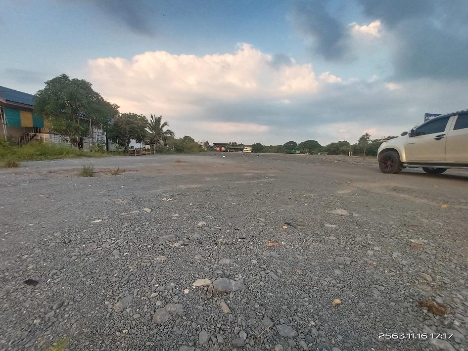 ถนนหน้าโรงงาน กว้างประมาณ 10-12 เมตร รถใหญ่ คอนเทนเนอร์ 40 ฟุต สวนกันได้