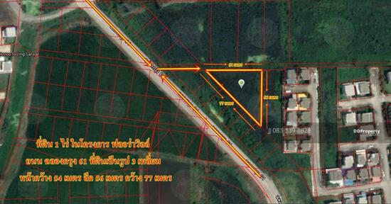 ที่ดินเป็นรูป 3 เหลี่ยม หน้ากว้าง 54 เมตร ลึก 56 เมตร ยาว 77 เมตร