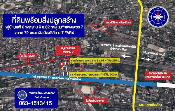 ขายที่ดินถูก 72 ตร.ว พร้อมสิ่งปลูกสร้าง หมู่บ้านเสรี8 พระราม9ซอย62 ทะลุถนนกำแพงเพชร7 ทำเลที่พักอาศัย สงบปลอดภัย เดินทาง