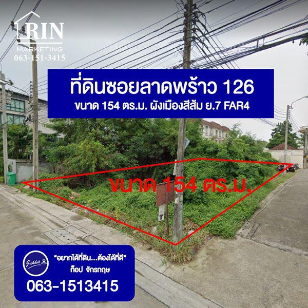 ขายที่ดิน 154 ตร.ว แปลงมุมติดถนน2ด้าน ซอยลาดพร้าว126 ถนนซอยกว้างรถสวนเลนง่าย ปากซอยใกล้รถไฟฟ้านิดเดียว ทำเลเหมาะปลูกบ้าน