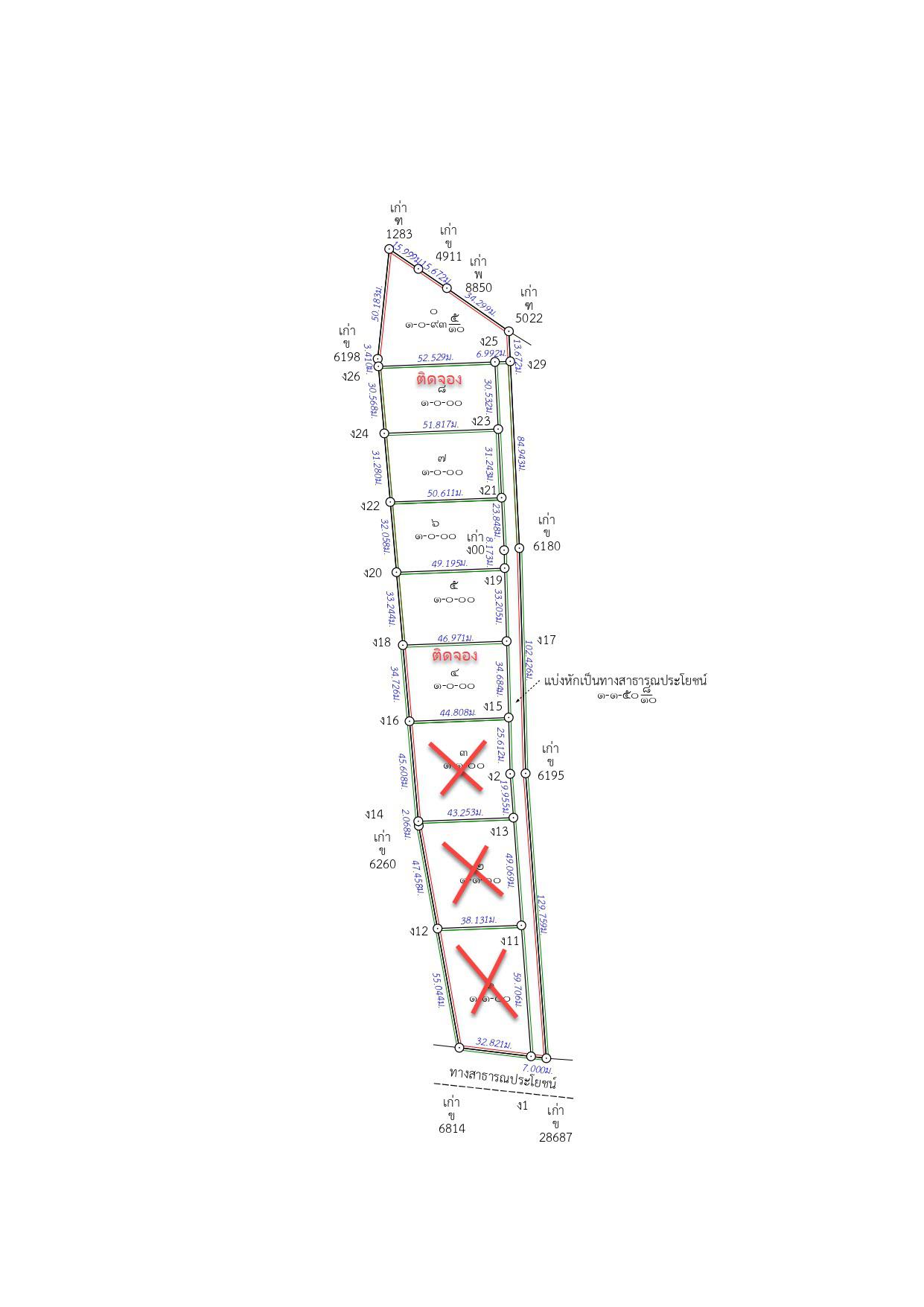 - แปลงที่ 4 (ติดจอง) เนื้อที่ 400 ตร.ว.ขายตร.ว.ละ 5,000 บาท
