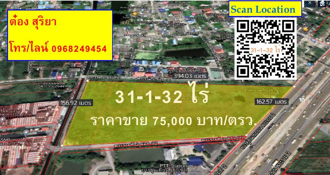 ขายที่ดินติดถนนพระราม 2 จำนวน 31 ไร่ 1 งาน 32 ตารางวา ซอย 90-92 ฝั่งขาเข้า