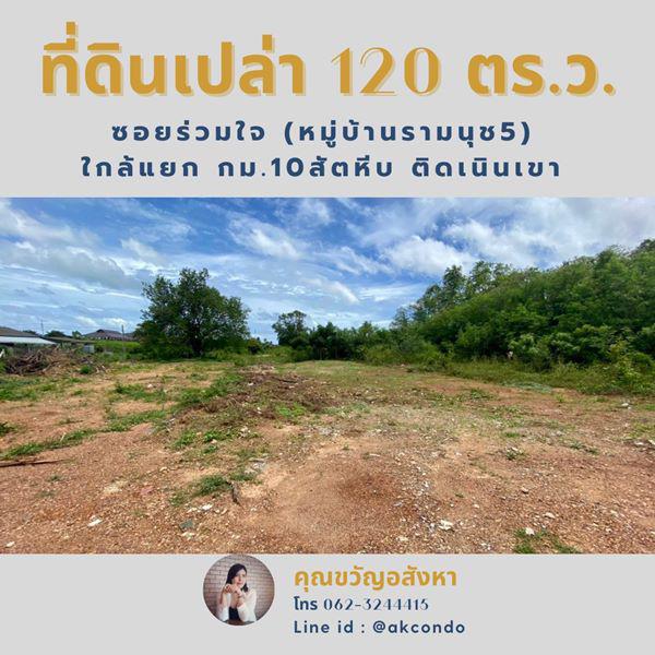 ขายด่วน ที่ดินเปล่า 120 ตร.วา ติดเขาใกล้ หมู่บ้านรามนุช 5 แยกกม.10 สัตหีบ ชลบุรี