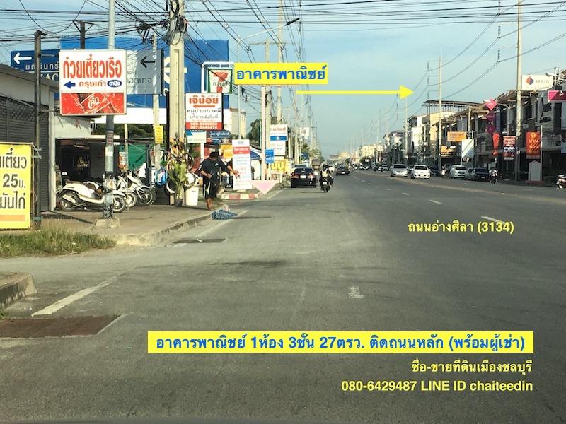 @@@ขายอาคารพาณิชย์ ติดถนนหลัก อ่างศิลา ชลบุรี เนื้อที่ 27ตรว.(ขายพร้อมผู้เช่า)