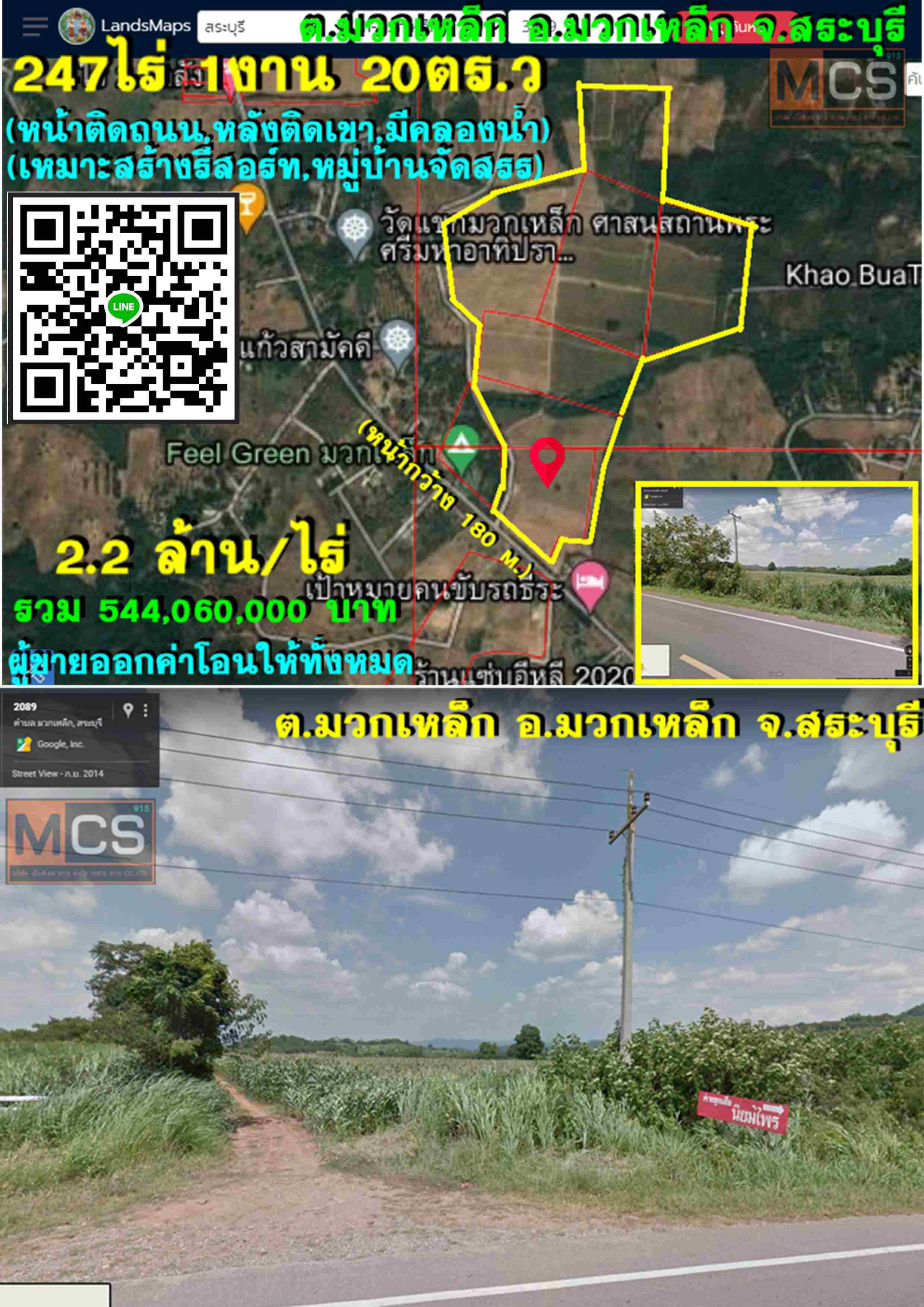 247 ไร่ (อ.มวกเหล็ก จ.สระบุรี)(โฉนดทั้งหมด) #ใกล้ถนนมิตรภาพ*ขาขึ้นโคราช #หน้าติดถนน,ติดคลองน้ำ,หลังติดเขาล้อมรอบ