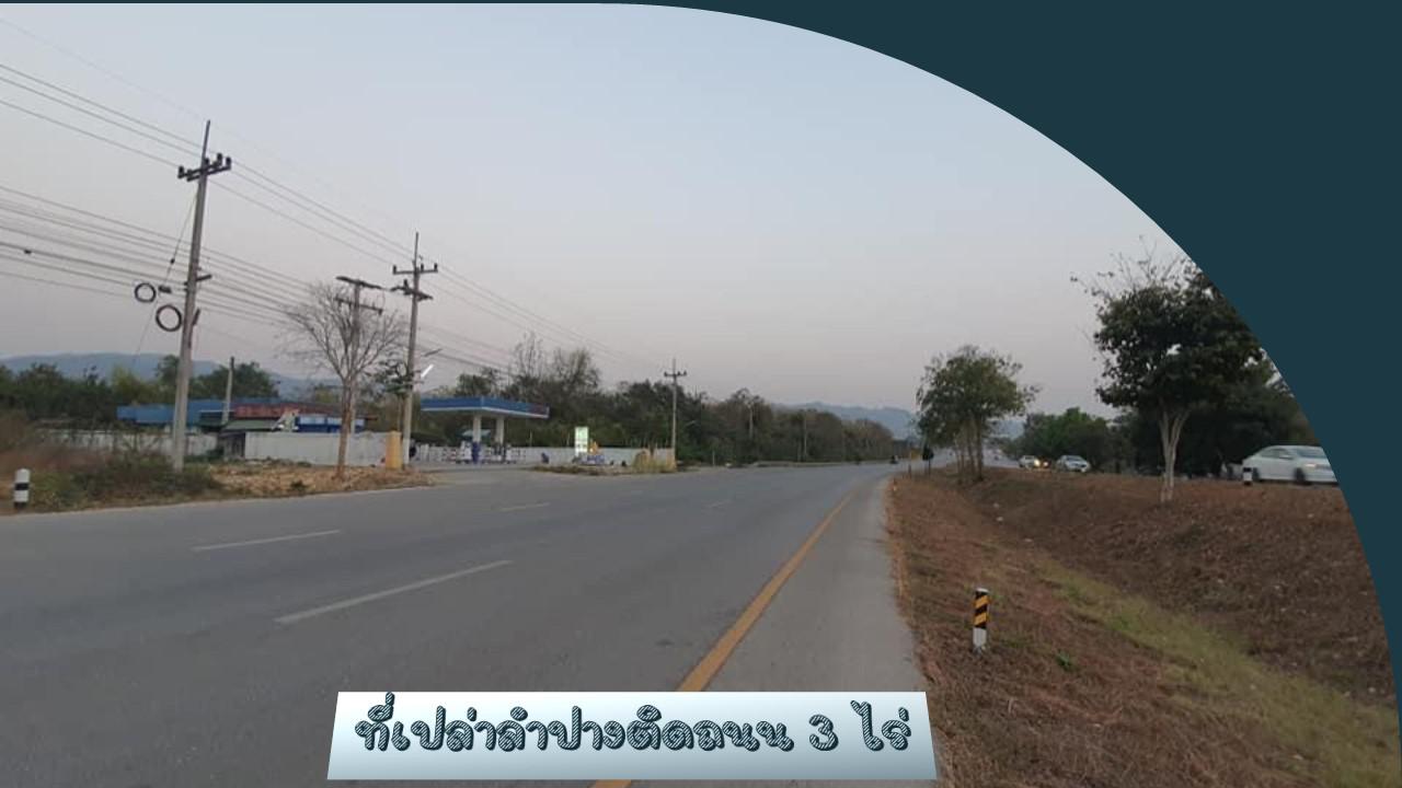 ที่ดินทำเลทอง บนเนื้อที่ 3 ไร่ หน้ากว้าง 60 เมตร ติดถนนลำปาง-เด่นชัย ด้านหลังติดลำห้วยแม่กระติ๊บ ด้านข้างติดกับปั๊ม LPG
