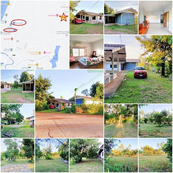ที่ดิน+บ้านชั้นเดียว 2 หลังท้ายหมู่บ้าน เนื้อที่เยอะ ติดถนน 4 ด้าน เหมาะทำบ้านสวนหรือรีสอร์ทเล็กๆ ได้ ตัวอำเภอโพนพิสัย ห