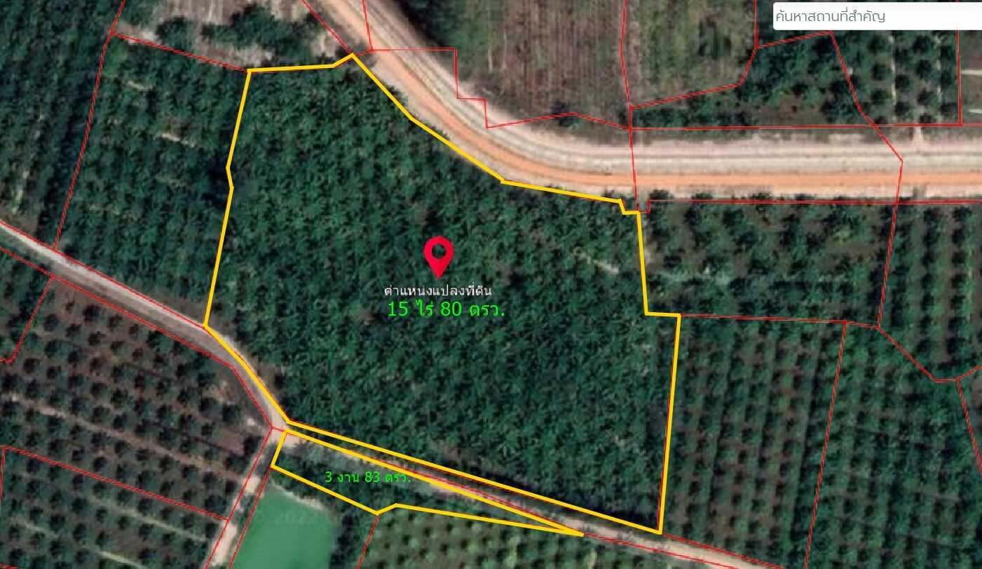 ขายที่ดิน เนื้อที่ 16 ไร่ 63 ตรว. ขายเหมา 4.5 ล้านบาท เป็นสวนปาล์มอายุ 10 ปี ติดถนนและคลองชลประทาน ตั้งอยู่ ต.น้ำรอบ