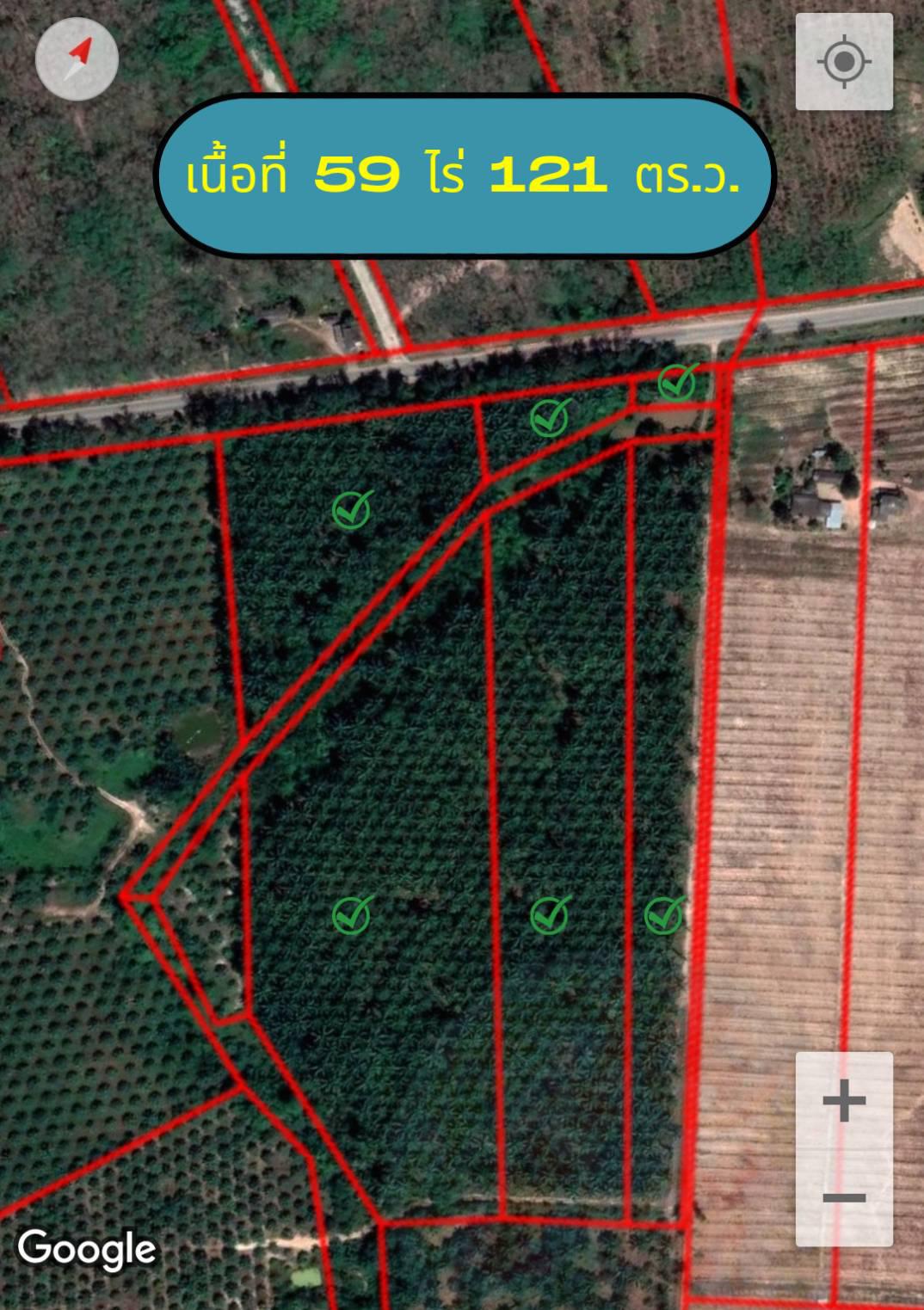 - เนื้อที่ 59 ไร่ 121 ตร.ว. หน้ากว้างติดถนน 270 ม.