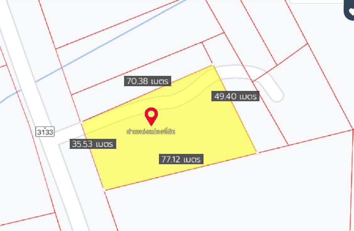 หน้ากว้างติดถนนเส้น 3133 35 เมตร X ยาว 77 เมตร