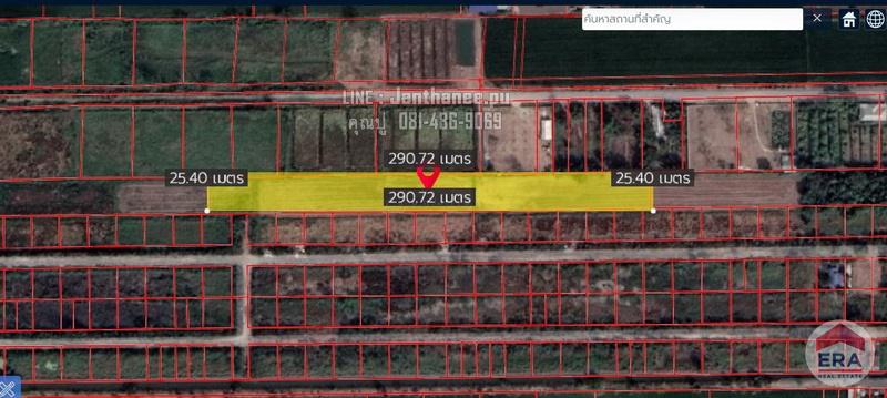หน้ากว้างที่ดิน 25 เมตร ลึก 290 เมตร จำนวน 4 ไร่ 282 ตร.วา