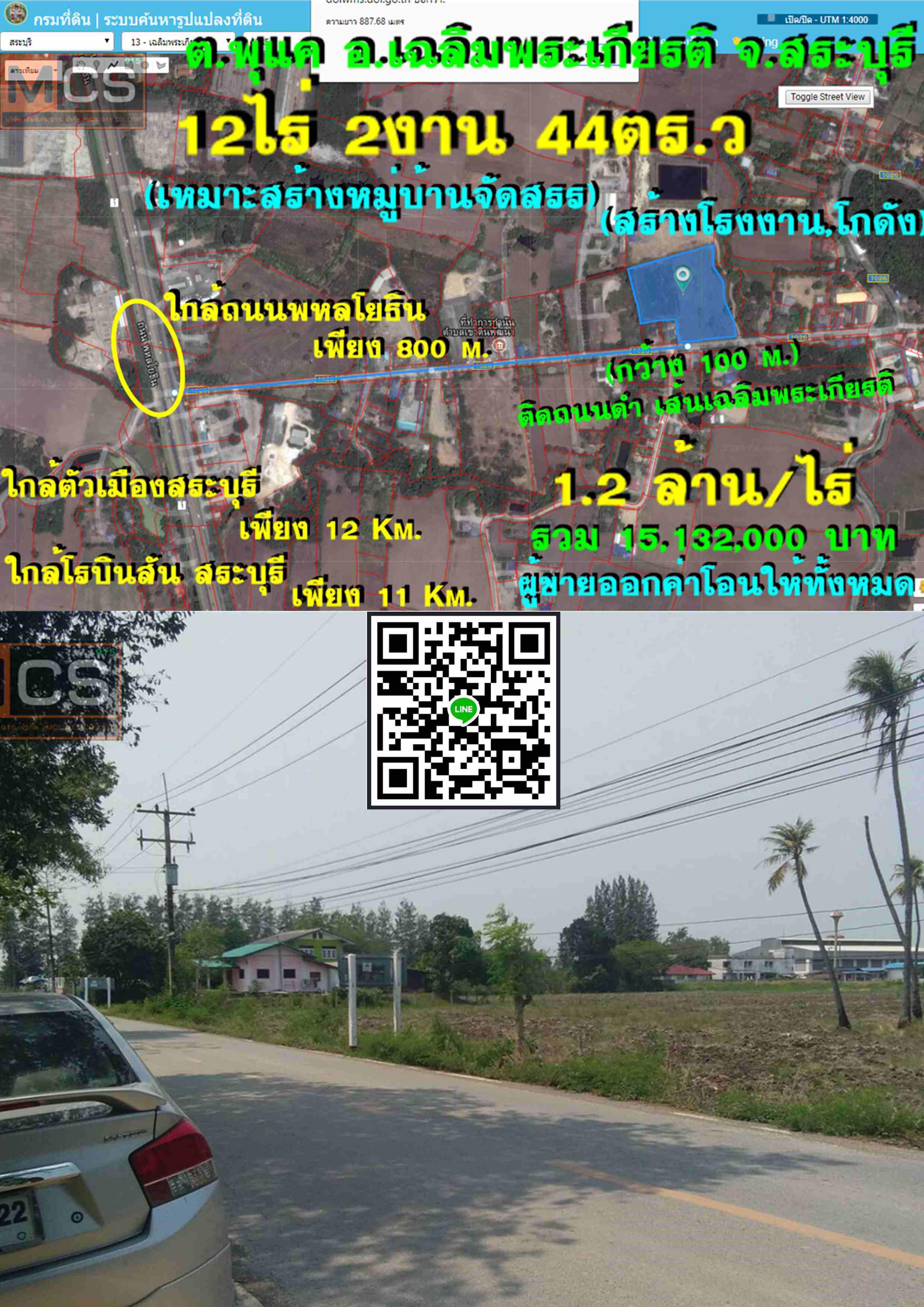 เนื้อที่ 12ไร่ 2งาน 44ตร.ว มีไฟ 3 เฟส,มีน้ำประปา (ต.พุแค อ.เฉลิมพระเกียรติ จ.สระบุรี)