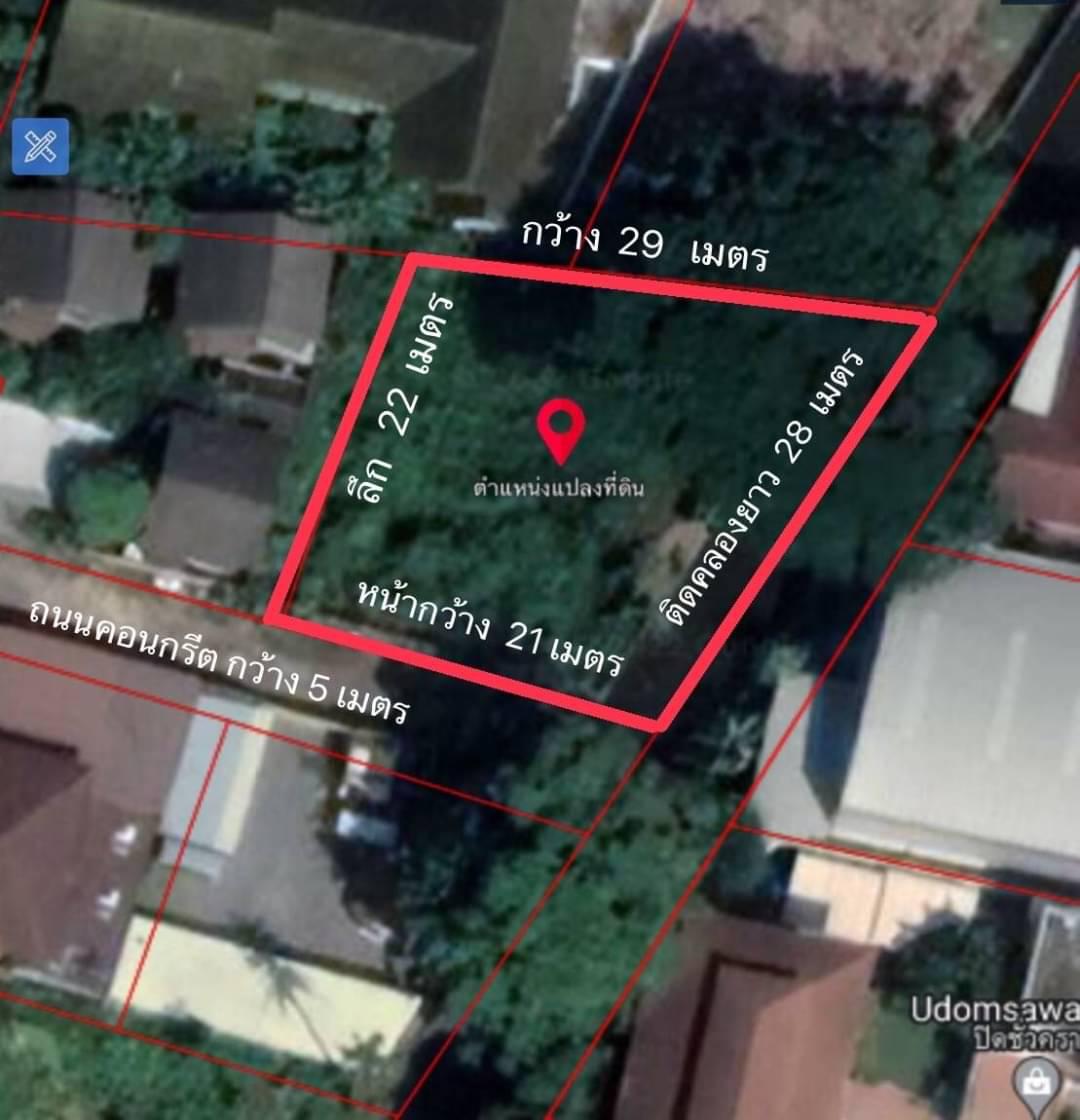 หน้ากว้างติดถนนคอนกรีต 21 เมตร ลึก 22 เมตร