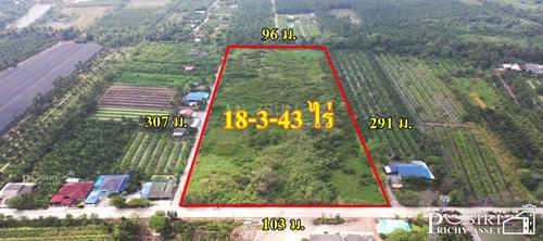 ขายที่ 18 ไร่ ติดถนน เส้นวัดคลองตัน ที่สวย สี่เหลี่ยมสวย หน้ากว้างติด ถนนถึง 100 เมตร ด้านหลังติดคลอง