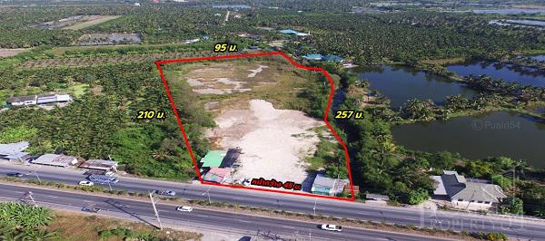 ขายที่ 11 ไร่เศษ ติดถนนบ้านแพ้ว-พระราม 2 หน้ากว้าง 45 ม. หันหน้าทิศใต้ ด้านซ้าย 210 ม. ติดสวนมะพร้าวยาวไปถึงพื้นที่ด้านหลัง ด้านหลัง 95 ม. ติดสวนมะพร้าวและสวนกล้วยขนาบข้าง ด้านขวา 257 ม. ติดบ่อน้ำและพื้นที่ของบ้านข้างเคียง
