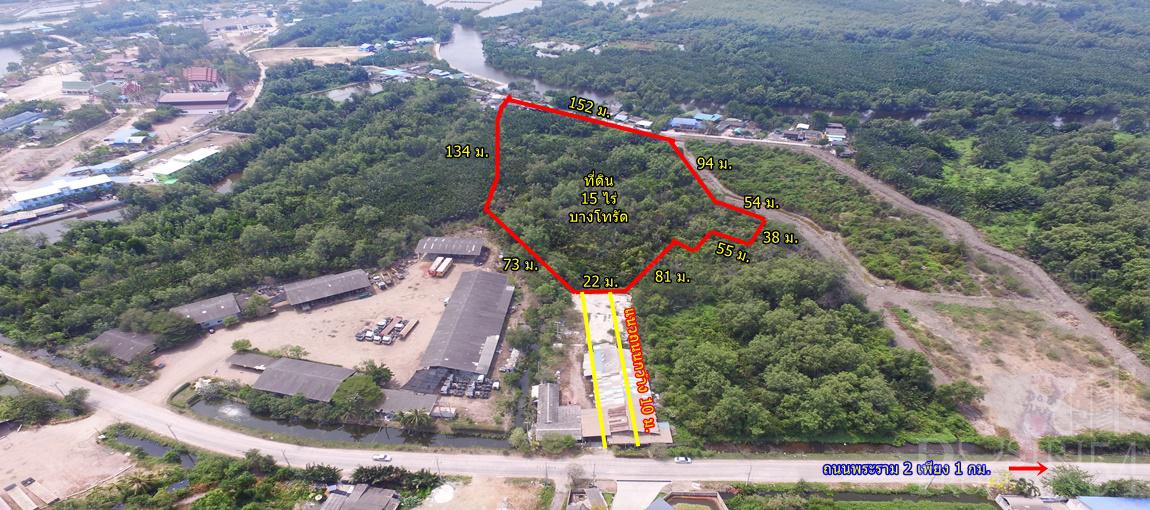 ขายที่ 15 ไร่ ถูกกว่าแปลงอื่นเพียง 6,500 ต่อตารางวา ติดถึงถนน 2 ด้าน ใกล้พระราม 2 เพียง 1 กิโลเมตร KK3456S