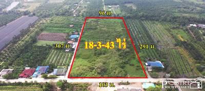 ที่ดินสี่เหลี่ยมสวย เนื้อที่ 18 ไร่ 3 งานเศษ หน้ากว้างติดถนนเส้นวัดคลองตัน 100 เมตร ยาวตลอดแนว ด้านหลังติดคลอง 100 เสตรเช่นกัน น้ำใสสะอาด ไม่เคยมีน้ำเค็ม เพราะมีประตูกั้นน้ำ