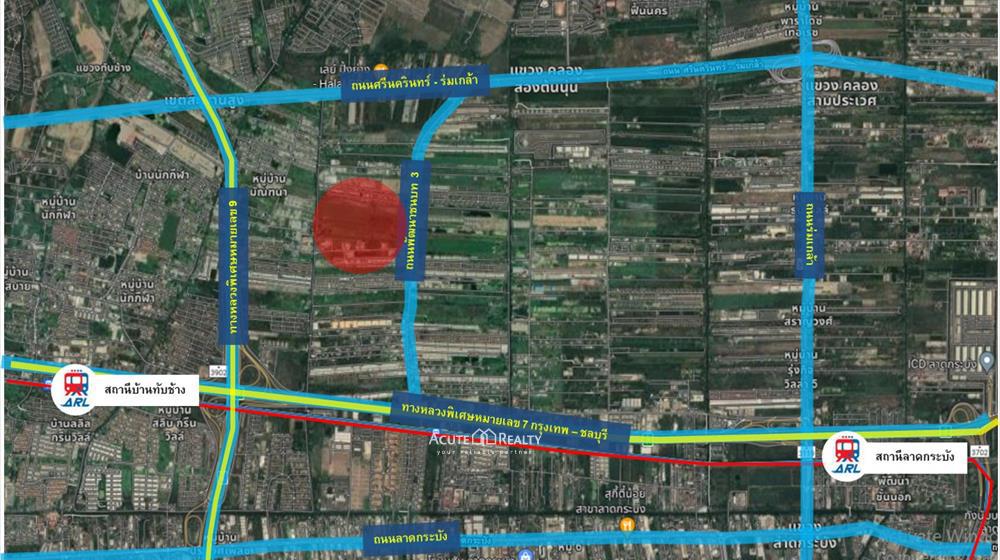 เดินทางเข้าตัวเมืองได้สะดวก ที่ดินห่างจากถนนเลียบมอเตอร์เวย์ เพียง 1.4 กม. และถนนศรีนครินทร์-ร่มเกล้า เพียง 1.6 กม.