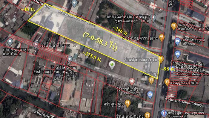 หน้าที่ดินกว้าง 98 ม. ยาว 275.5 ม. มีตึกแถวด้านหน้าที่ดิน