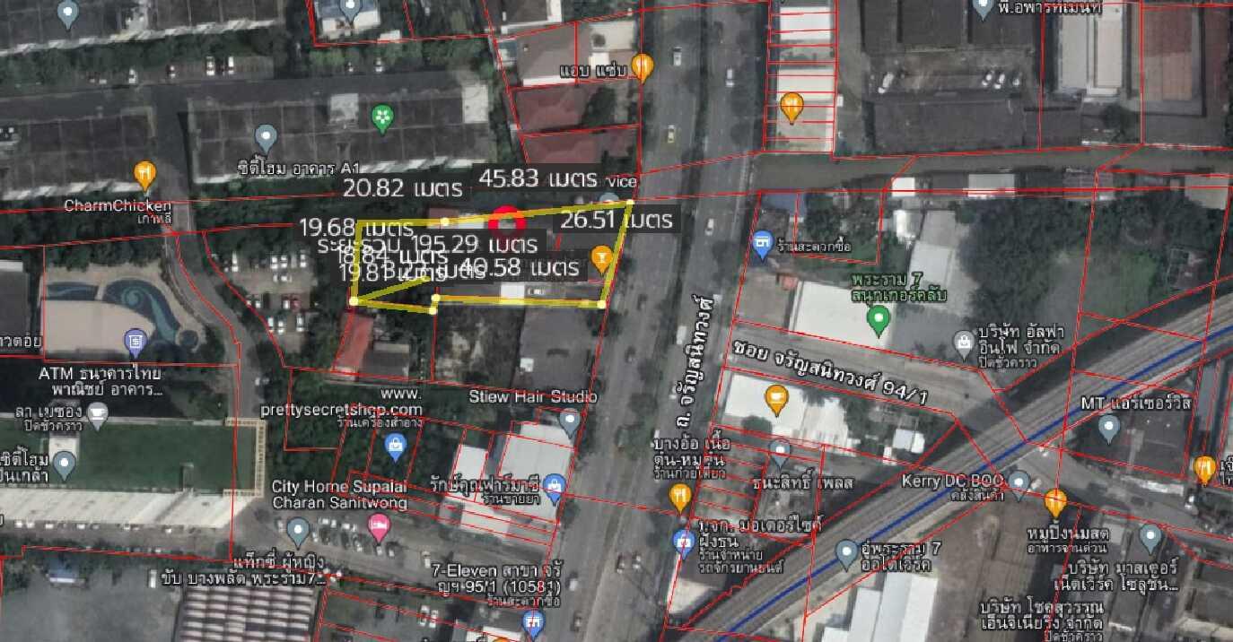 ขายด่วนที่ดินติดถนนจรัญสนิทวงศ์ เนื้อที่ 345 ตรว. ใกล้สถานีรถไฟฟ้าสถานีบางอ้อเพียง 700 เมตร ใกล้ทางด่วนพระราม 7