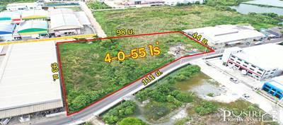 สร้างโรงงาน สวย 4 ไร่ หน้ากว้างเด่น 111 ม. เทรลเลอร์ เข้า-ออก สะดวก ติดถนน ซ.ราษฏร์สามัคคี 5 ใกล้ถนนเศรษฐกิจเพียง 1.1 กม