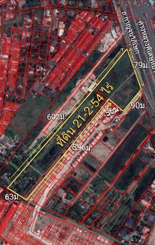 LS0176 ขายที่ดิน ยกแปลง ใกล้แฟชั่นไอส์แลนด์ ขนาด 21-2-54 ไร่ ไม่แบ่งขาย ติดถนนเลียบมอเตอร์เวย์ กาญจนาภิเษก ขาย 475,970,000 บาท