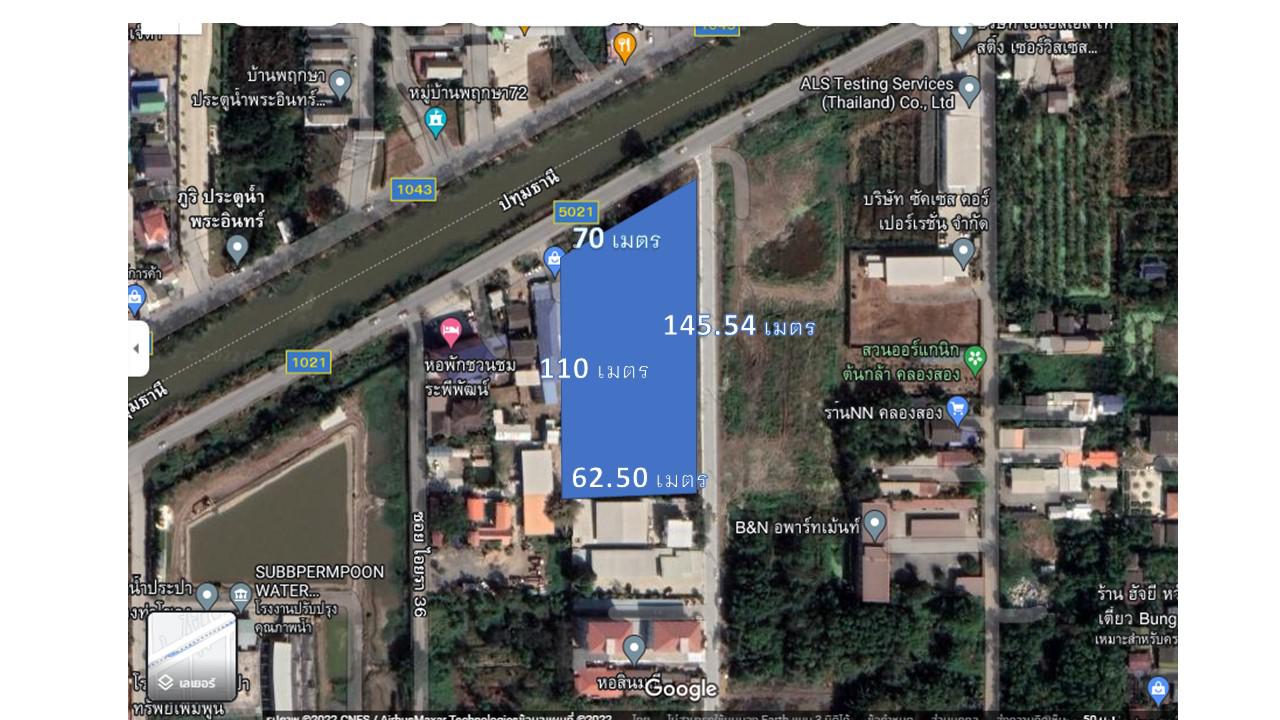 ขายที่ดินเปล่าติดถนน เนื้อที่ 5-1-34 ไร่ ซ. ไอยรา35 ถ. เลียบคลองรพีพัฒน์ ต. คลองสอง คลองหลวง ปทุมธานี