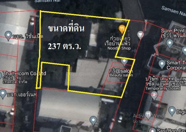 ขนาดที่ดิน 237 ตรว. กว้าง 16 เมตร ลึก 35 เมตร ผังสีส้ม มีสิ่งปลูกสร้าง เป็นที่จอดรถ และ ตัวบ้าน 1 ชั้น 1หลัง และ บ้าน 2 ชั้น 1 หลังติดกัน