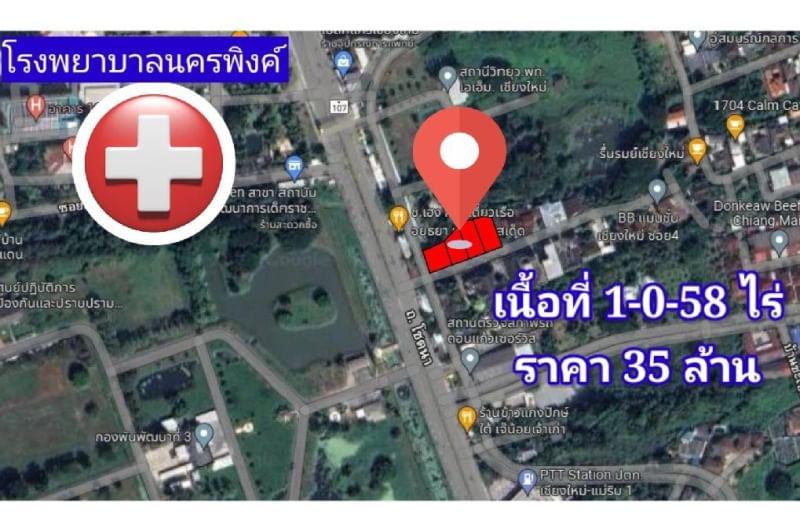 #ขายที่ดินแม่ริม ตรงข้ามโรงพยาบาลนครพิงค์ เนื้อที่ 1-0-58 ไร่ ยกแปลง 35 ล้าน