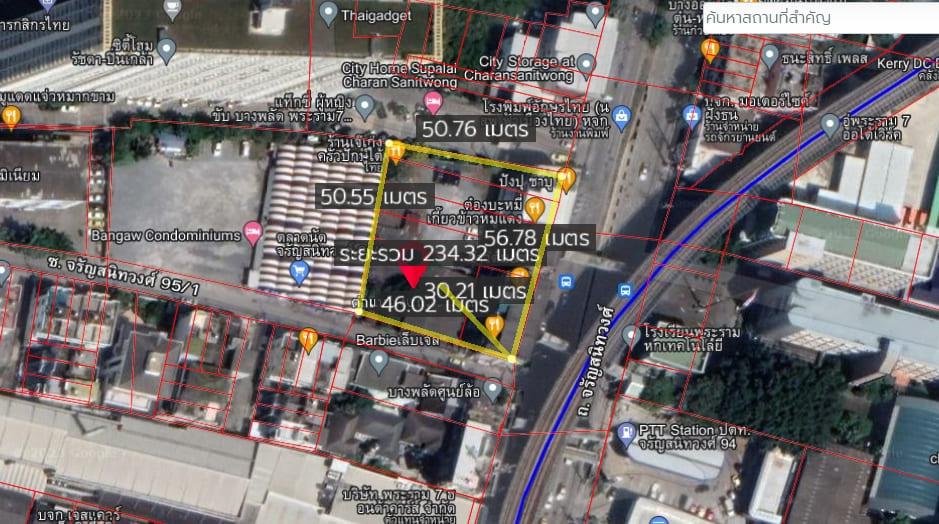 ขายที่ดินติดถนนจรัญสนิทวงศ์ อยู่ซอยจรัญสนิทวงศ์ 95/1 เนื้อที่ 669 ตรว. ขายเหมา 180 ล้านบาท