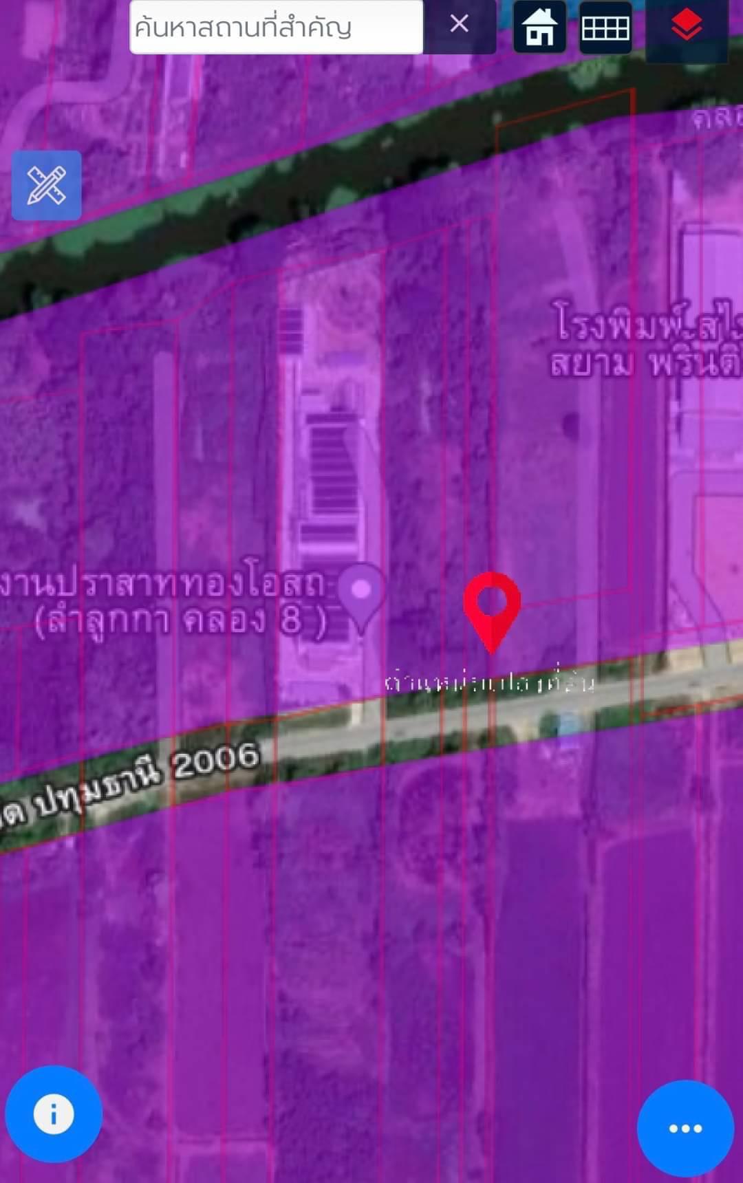 - ที่ดินติดคลองหกวาสายล่าง หน้ากว้างปีะมาณ 50เมตร ลึกประมาณ1500 -1600 เมตร รูปแปลงเป็นเส้นก๊วยเตี๋ยว ตรงกลางที่ดินโดนเวนคืนตัดเป็นทางซอยองค์การบริหารส่วนตำบลปทุมธานี 2006 เท่ากับที่ดินติดถนนซอยทั้งสองข้างทาง เป็นที่ท้องนาดั้งเดิม สาธารณูปโภคน้ำไฟเข้าถึง
