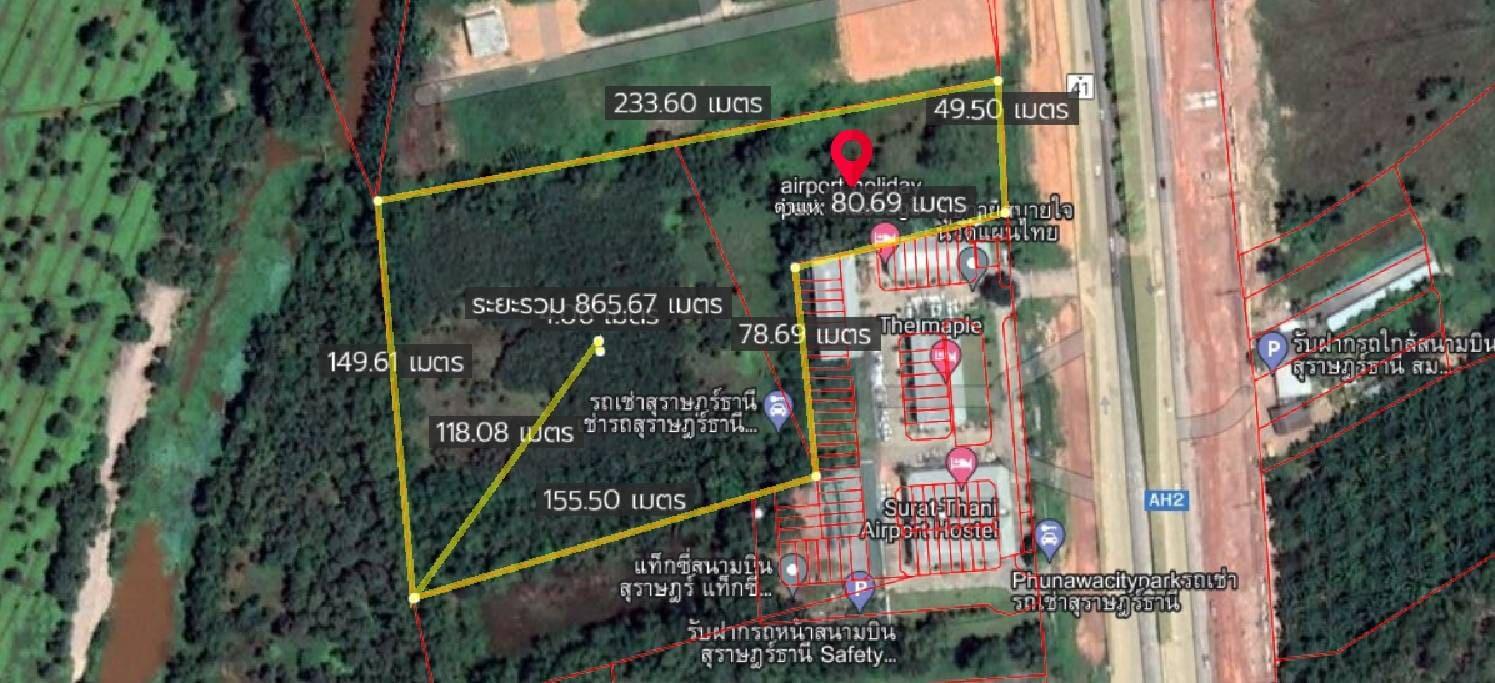 ขายที่ดินติดถนนเอเชียหน้าสนามบิน เนื้อที่ 15 – 3 – 79 ไร่ ขายไร่ละ 3 ล้านบาท หน้ากว้างติดถนนประมาณ 49 เมตร