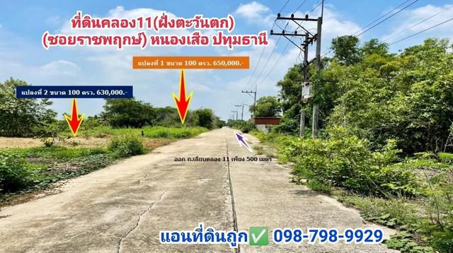 (ซอยราชพฤกษ์) หนองเสือ ปทุมธานี 100 ตร.ว มี 2 แปลง 630,000 บาท / 650,000 บาท
