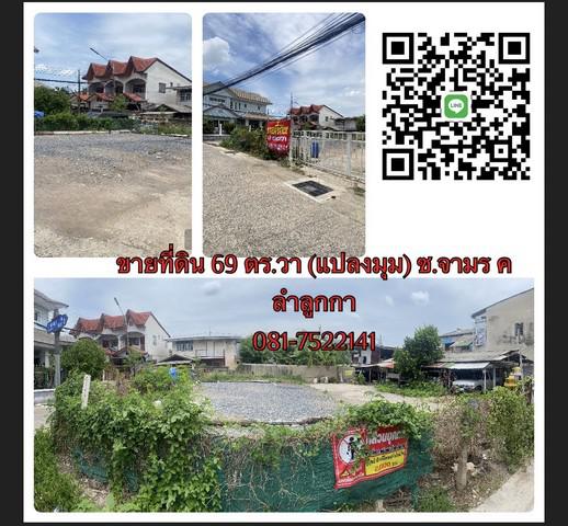 ขายที่ดินแนวรถไฟฟ้าคูคต ซอยจามร ค.(แปลงมุม) 69 ตารางวา ลำลูกกา