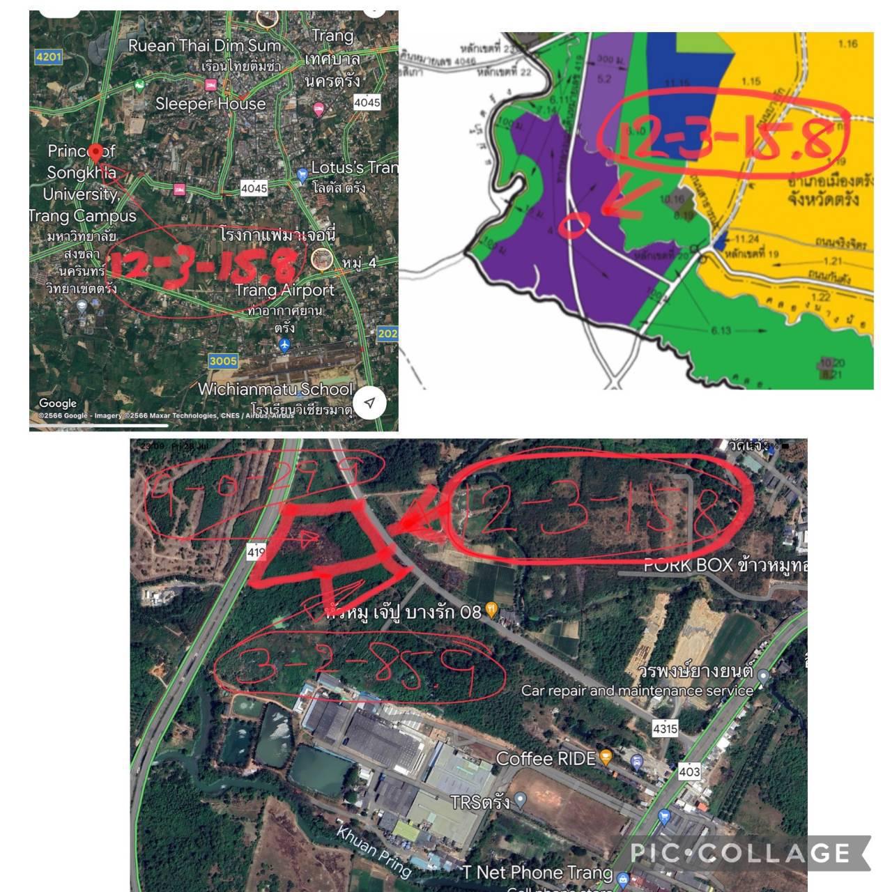 ขายที่ดินเปล่าติดถนนเลี่ยงเมืองตรังด้านใต้ฝั่งตะวันตก ตำบลควนปริง อำเภอเมือง จังหวัดตรัง อยู่ในผังเมืองโซนสีม่วง