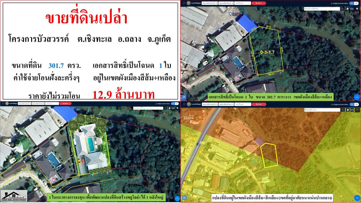 ขายที่ดินเปล่า ขนาด 301.7 ตารางวา โครงการบัวสวรรค์ ต.เชิงทะเล อ.ถลาง ภูเก็ต