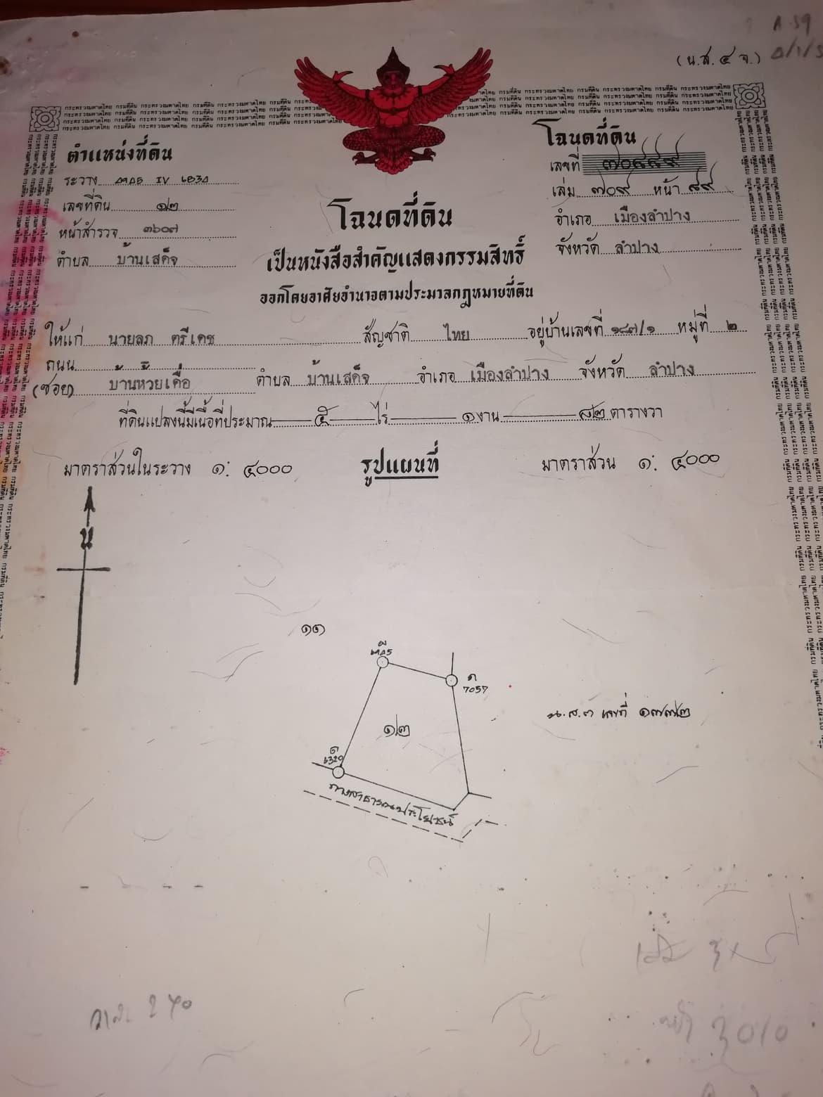 ที่ดินเปล่า 5 ไร่ 1 งาน ติดถนนคอนกรีต ห่างจากถนน 4 เลนสาย AEC ประมาณ 200 เมตร เส้น ลำปาง – พะเยา ราคา 3,000,000 บาท ใกล้สถานีตำรวจ 1 กม. ใกล้โรงเรียน 2 กม. เหมาะสำหรับชื้อไว้เก็งกำไร สร้างบ้าน สร้างหอพัก เนื่องจากฝั่งตรงข้ามมีคนจีนมาชื้อไว้หลายร้อยไร่ อนาคตอาจจะพัฒนาเป็นนิคมอุตสาหกรรม ใกล้โรงงานเบทาโกร โรงงานดัชมิล