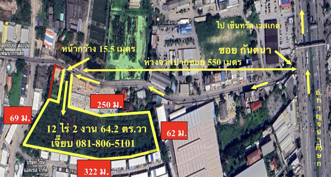 ขาย ที่ดินทำเลดี เนื้อที่ 12ไร่2งาน64.2ตร.วาติดต้นซอย กันตนา ห่างถนนใหญ่กาญจนาภิเษก เพียง 550 เมตร ขาย เพียง 253,210,000 บาท (เจี๊ยบ 081-806-5101)