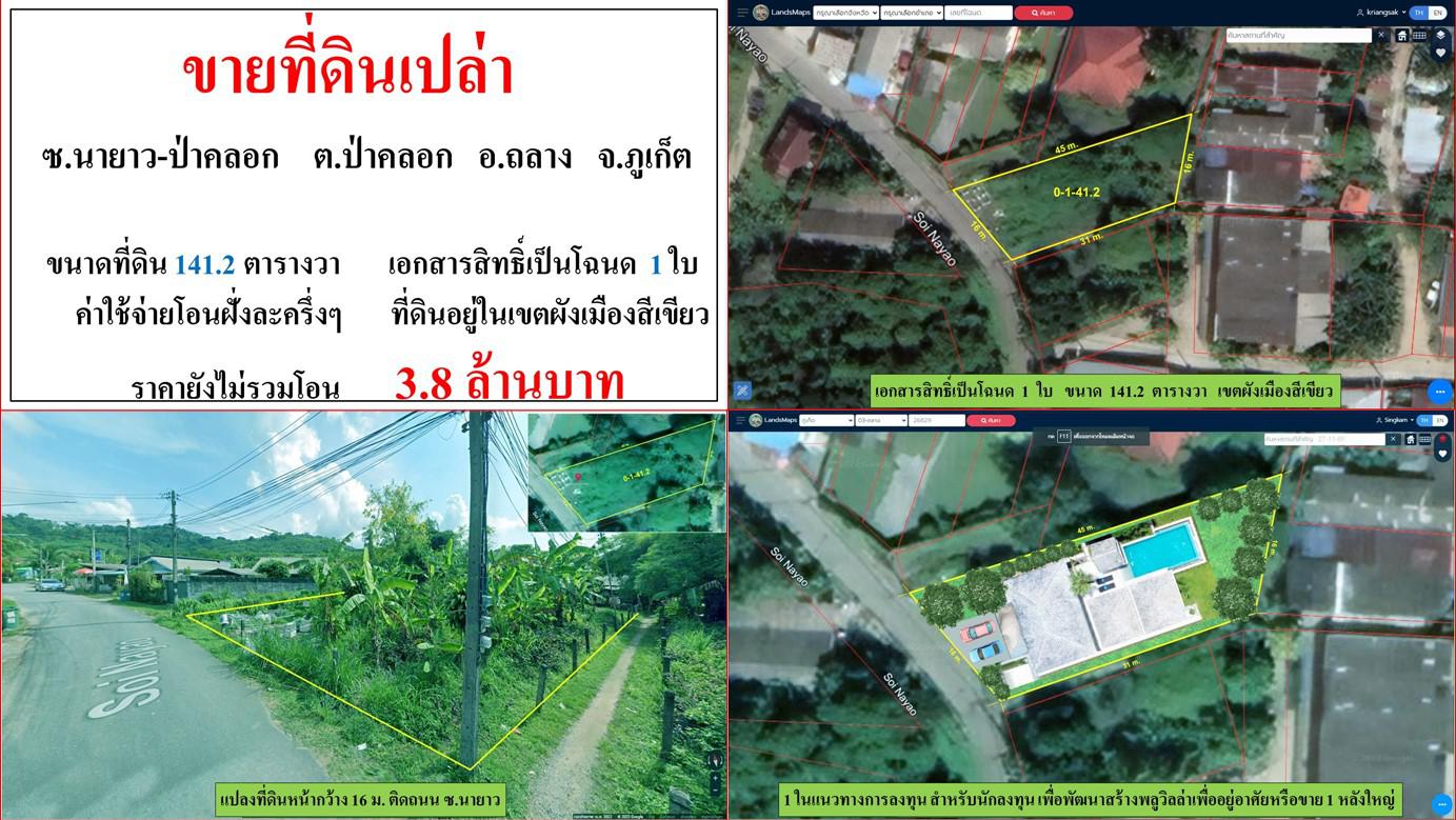 ขายที่ดินเปล่า ขนาด 141.2 ตารางวา ซ.นายาว-ป่าคลอก ต.ป่าคลอก อ.ถลาง ภูเก็ต