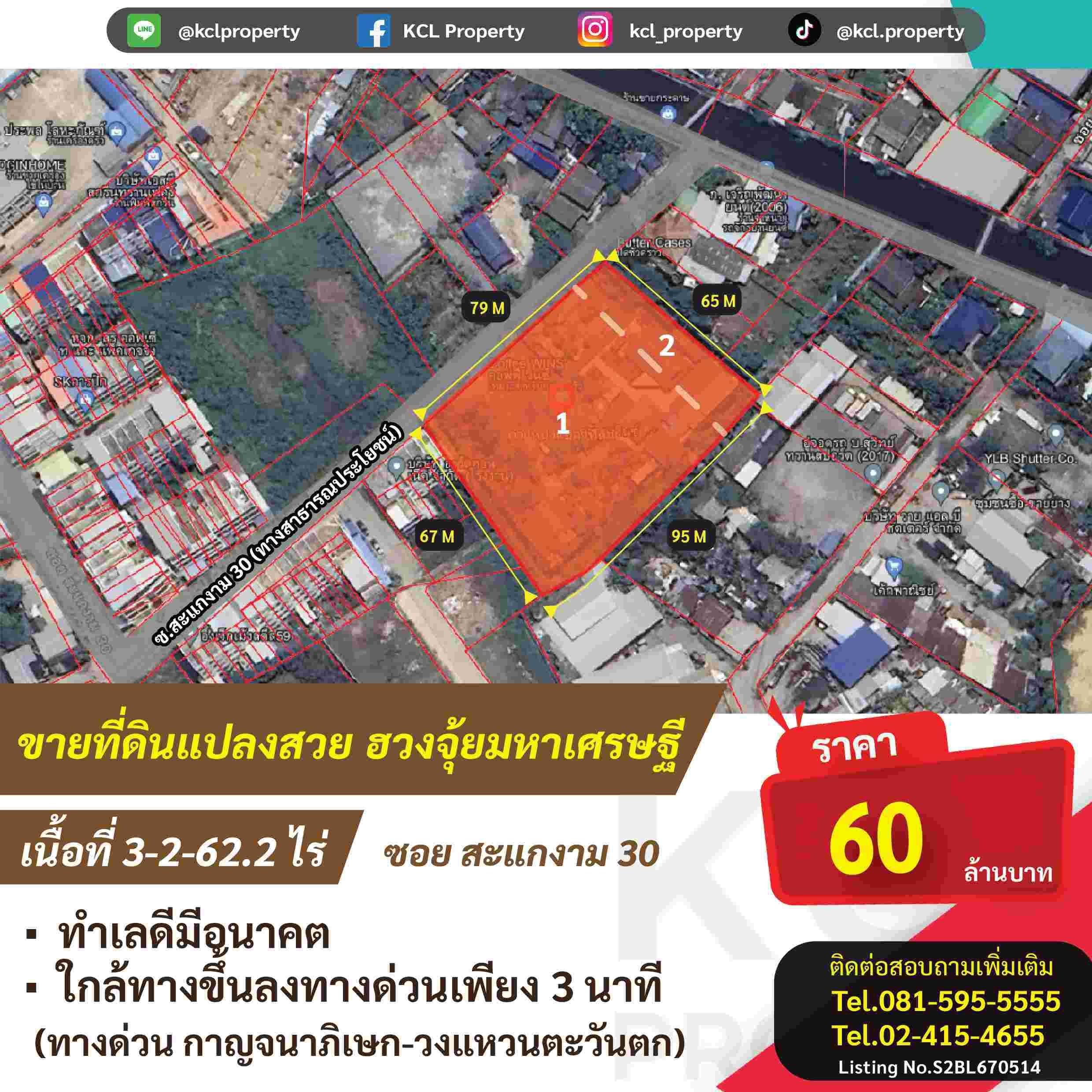 ขายที่ดินซ.สะแกงาม 30 เนื้อที่ 3-2-62.2 ไร่ แปลงสวย (ฮวงจุ้ยมหาเศรษฐี)
