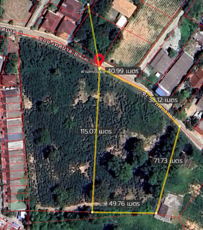 ไม่มีท่อก๊าซใต้ดิน แต่มีเสาไฟตรงหน้าที่ดิน ถนนเทศบาล 8 เป็นถนน 2 เลนส์