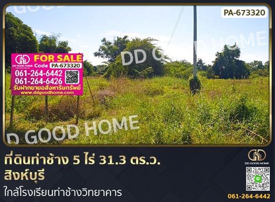 ที่ดินท่าช้าง 5 ไร่ 31.3 ตร.ว. สิงห์บุรี ใกล้โรงเรียนท่าช้างวิทยาคาร